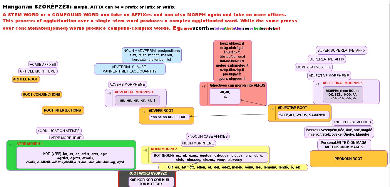 1., BASE/STEM WORDS (gyökszó) by the addition/agglutination of WORD MODIFIERS/MORPHS